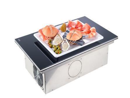 Temperature adjustable from -5°C to +15°C. With self-cooling-system (refrigerant R600a). Other refrigerants and execution 60 Hz on request. Surface made of chrome-nickel steel, ceran glass or Dekton. Cooling capacity at -12°C evaporation temperature.